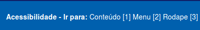 De acordo com o navegador é possível navegar rapidamente via teclado usando teclas de atalho para as áreas de conteúdo (acessa a DIV xpto); a área de menu (acessa a DIV inst); e, ao rodapé (acessa a DIV links-rodape) |