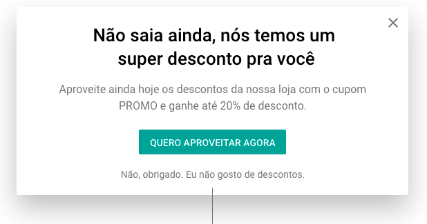Deveria ser uma boa prática sempre, mas muitas é possível encontrar situações aonde não é isso que ocorre. Existem muitos casos de promoções que são colocadas em modais em que a ação “fechar a janela” vem acompanhada de uma mensagem que pode ser interpretada como ironia.