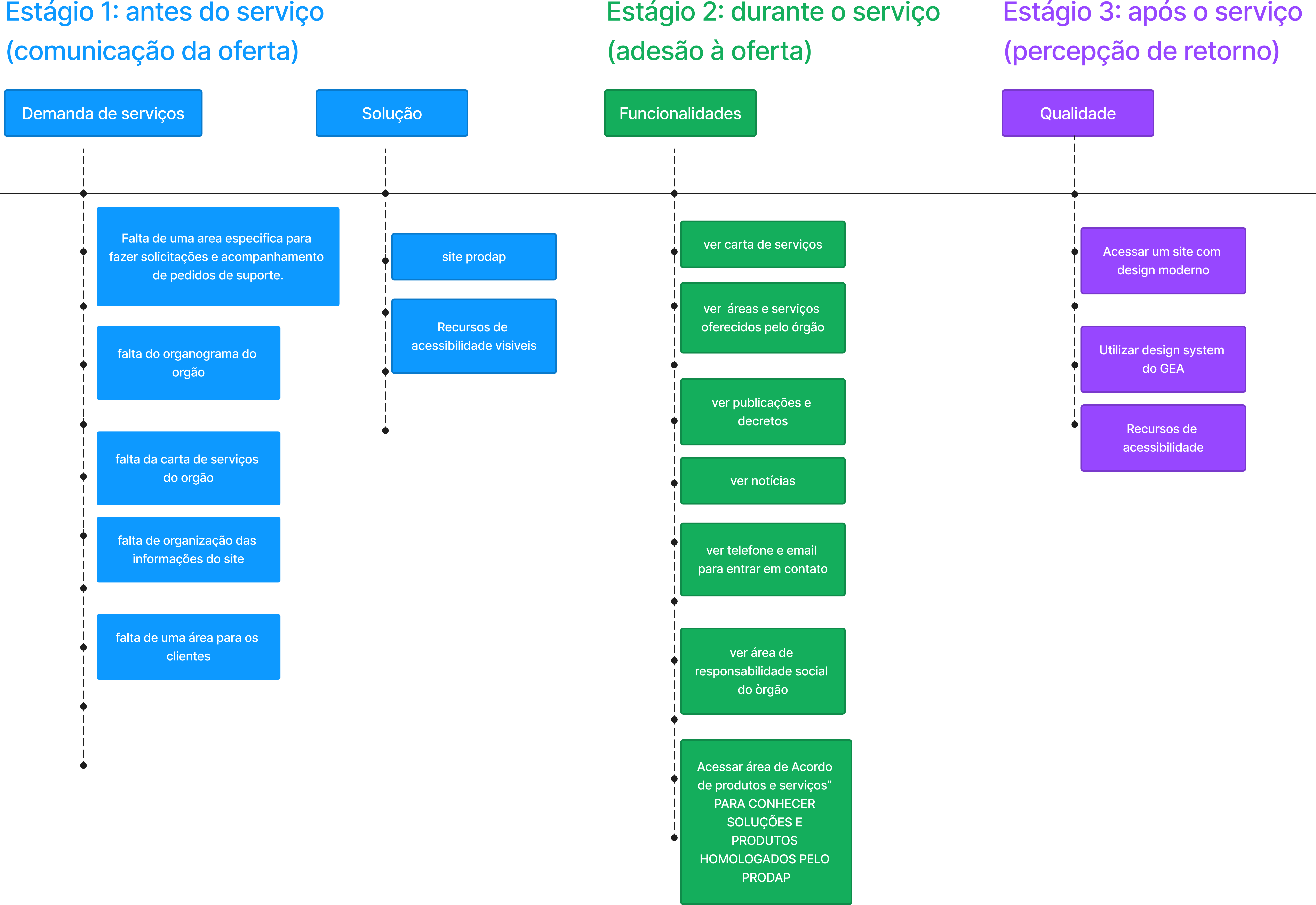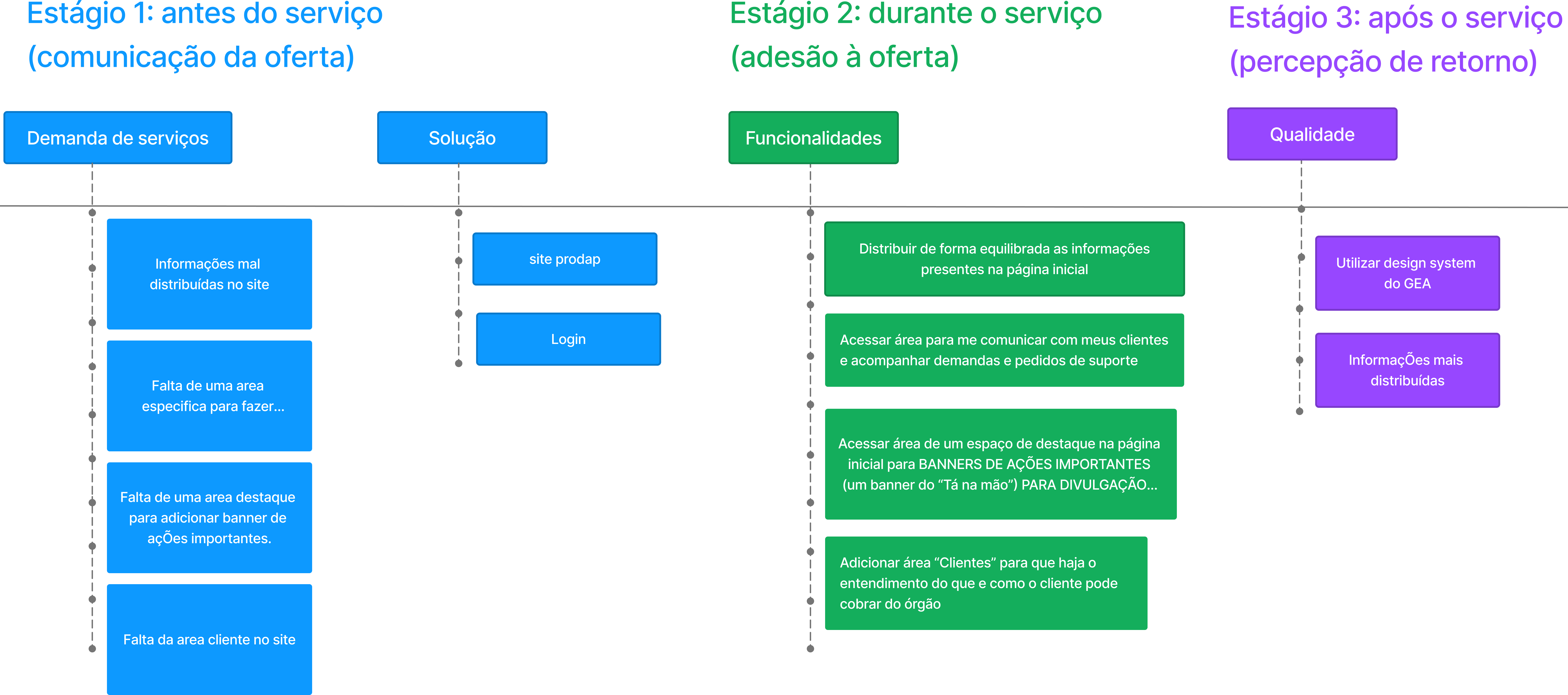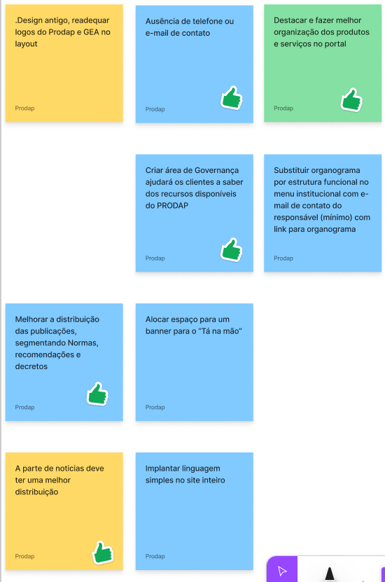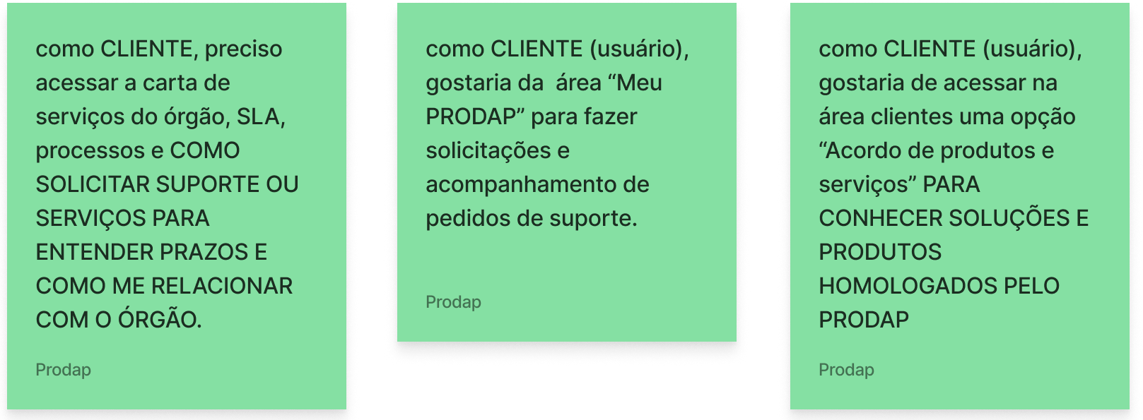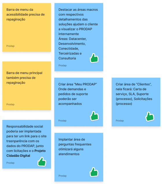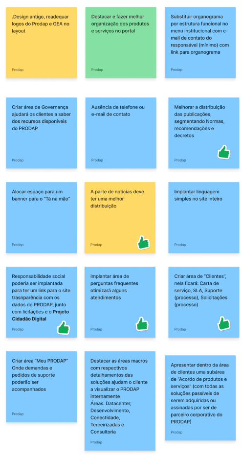 Com a necessidade de haver um mecanismo ágil de relacionamento entre o PRODAP, clientes, cidadão e servidores, a equipe de UX buscou estabelecer as principais funcionalidades do produto, as informações necessárias e eventuais automações com outros sistemas corporativo do Governo.