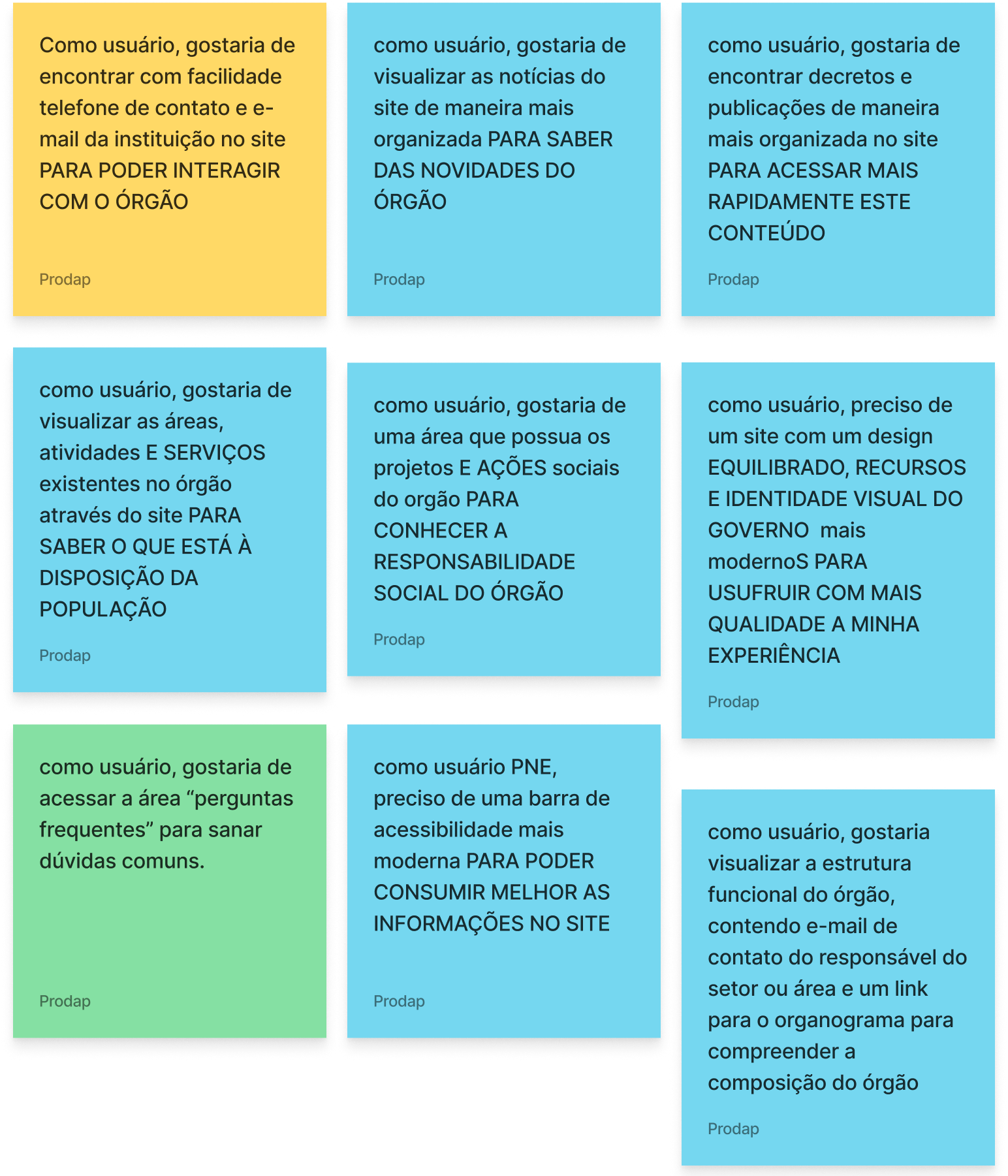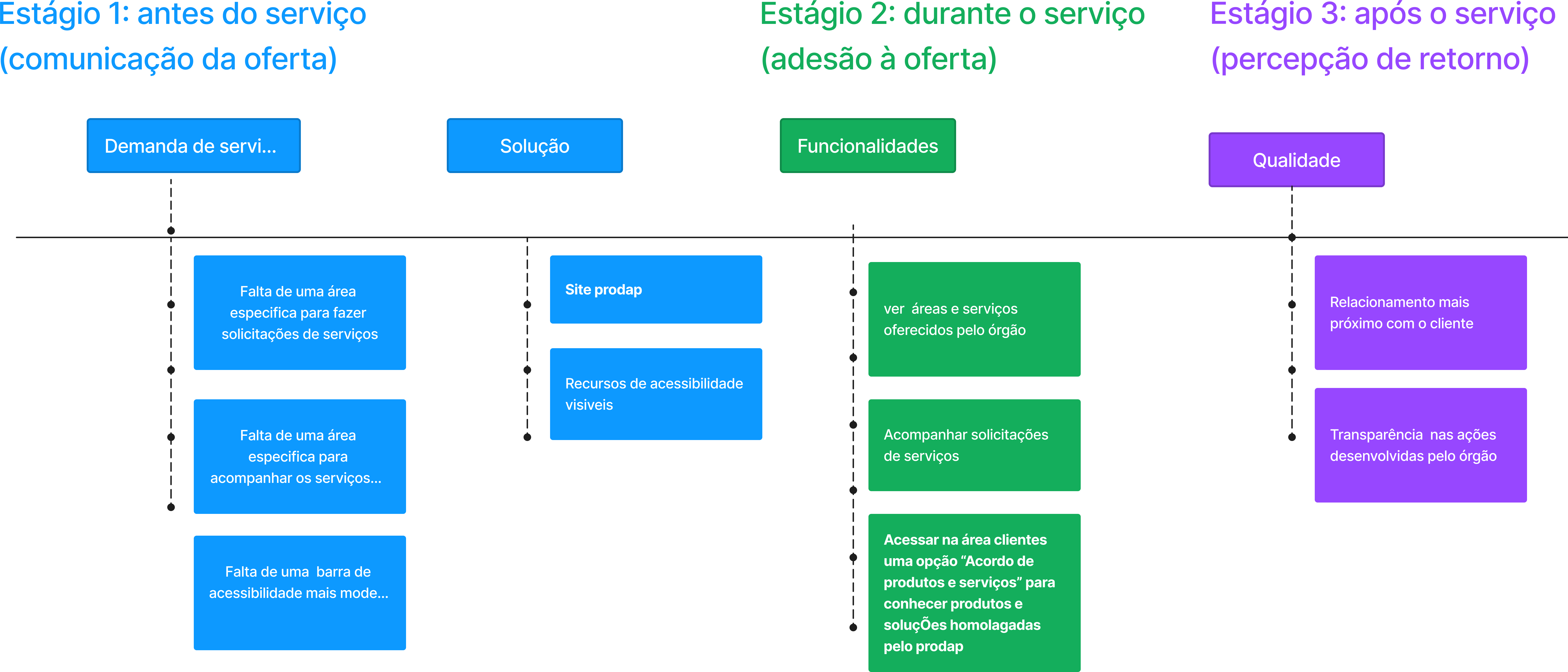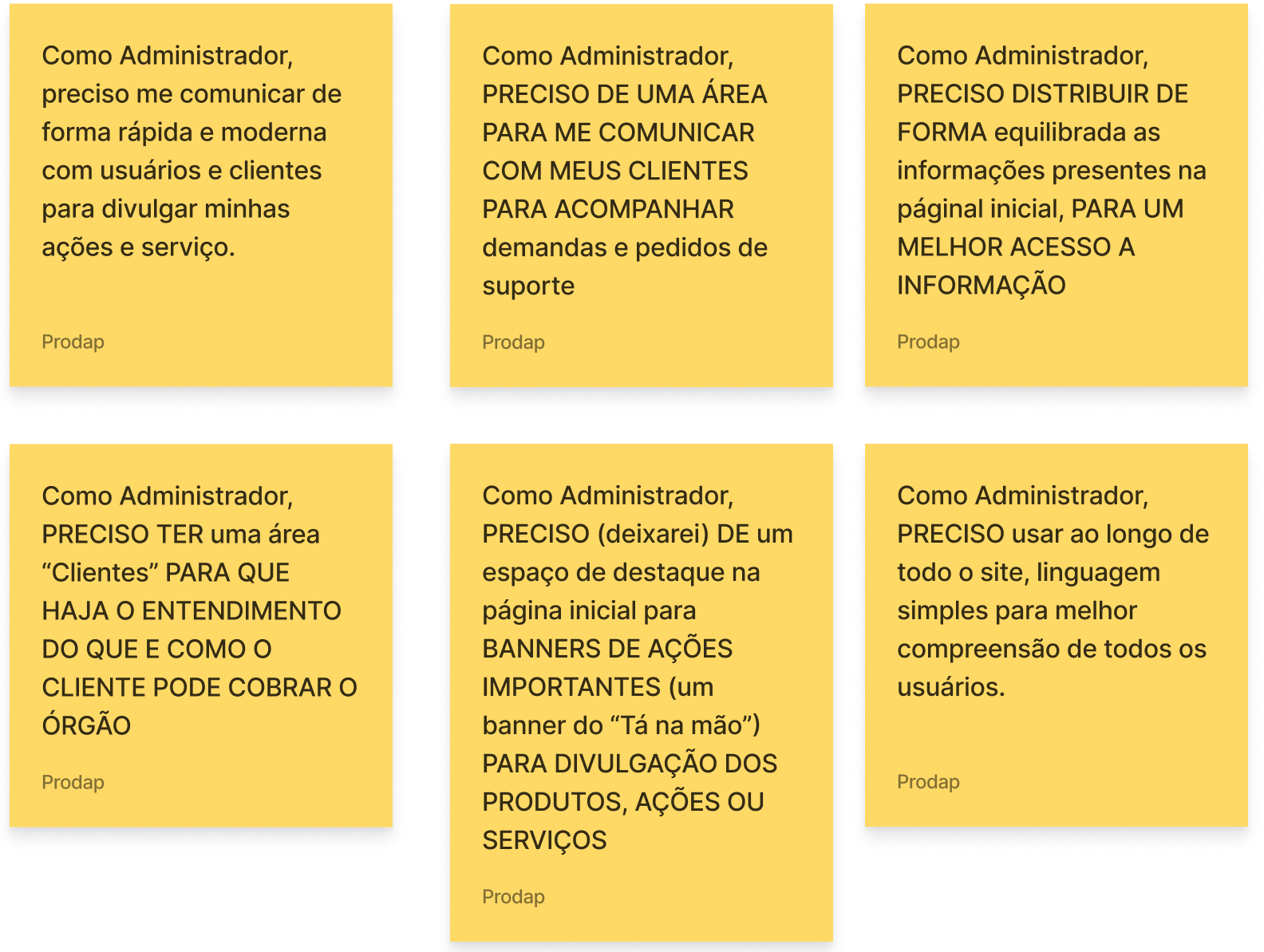 Com a necessidade de haver um mecanismo ágil de relacionamento entre o PRODAP, clientes, cidadão e servidores, a equipe de UX buscou estabelecer as principais funcionalidades do produto, as informações necessárias e eventuais automações com outros sistemas corporativo do Governo.