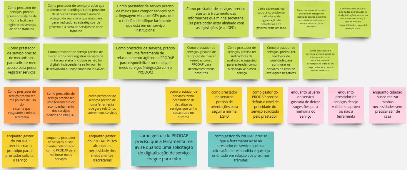 Estas histórias foram organizadas em grupos de importância, para a elaboração do MVP.