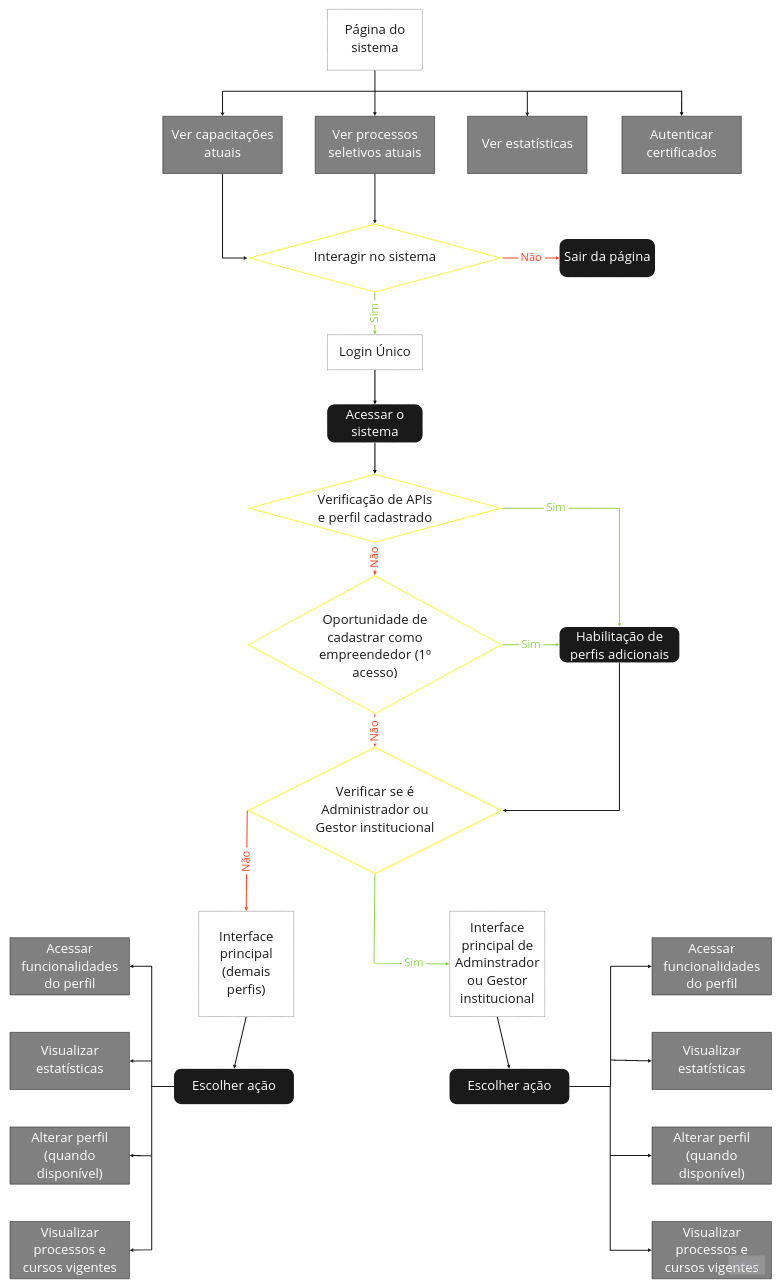 Devido a natureza do sistema, a jornada do usuário foi feita para Cada um dos perfis, abaixo seguem os diagramas.