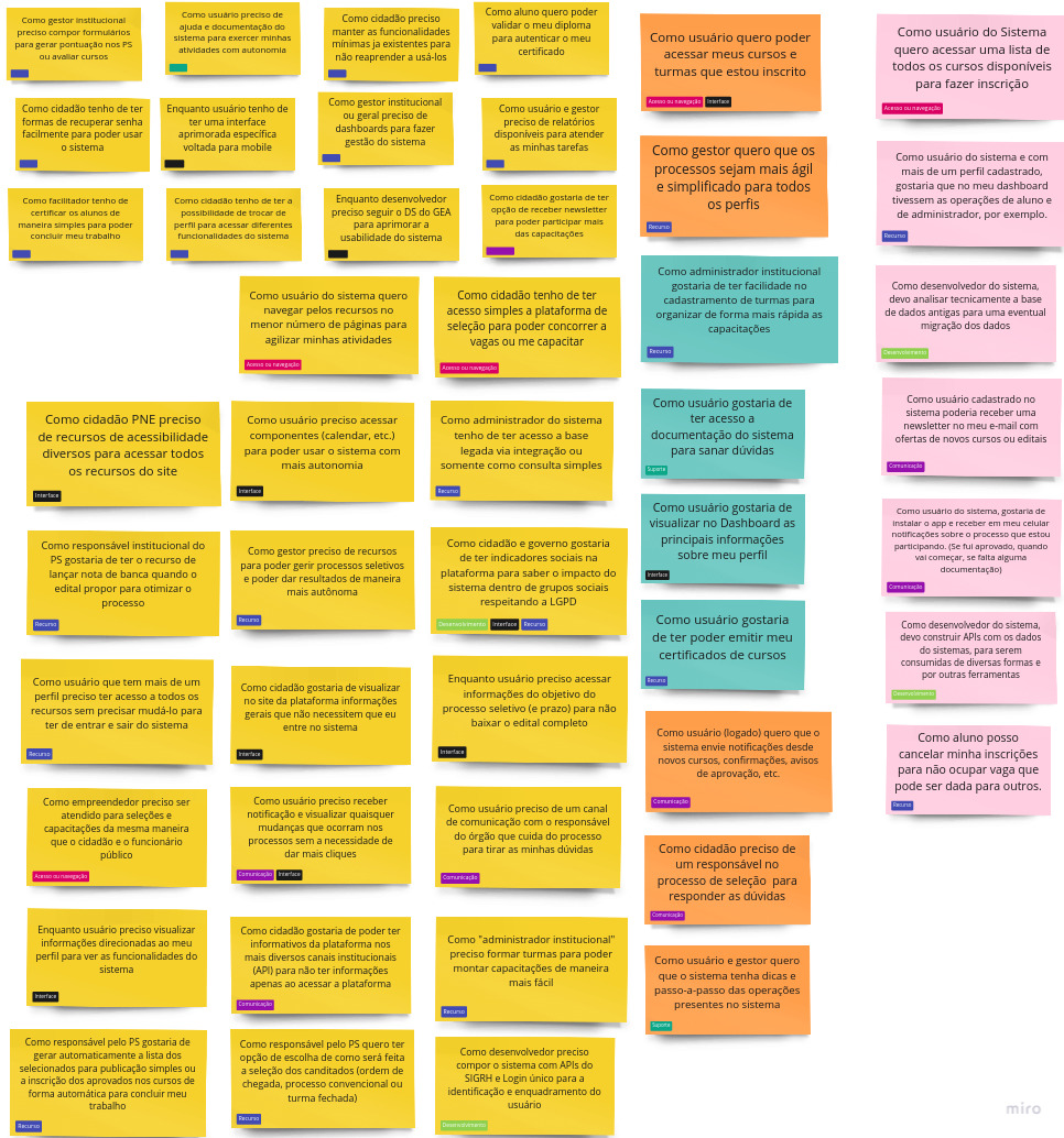 Estas histórias foram organizadas em grupos de importância, para a elaboração do MVP.