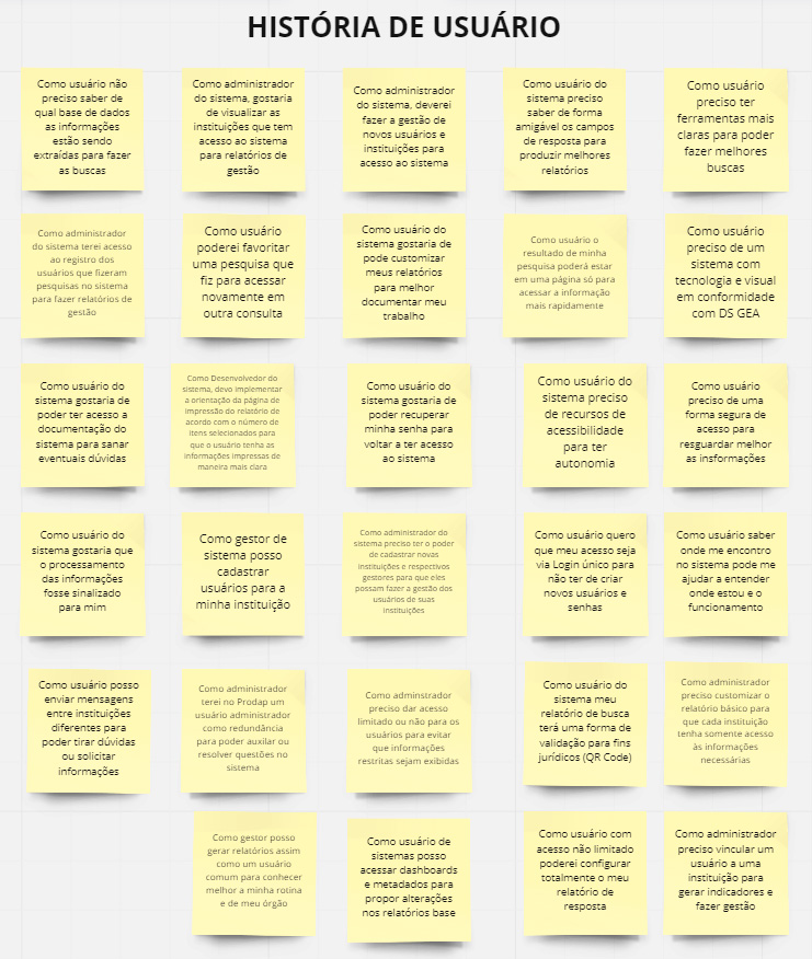 De posse deste novo quadro, foram elaboradas as histórias de usuário pertinente a cada um dos itens.