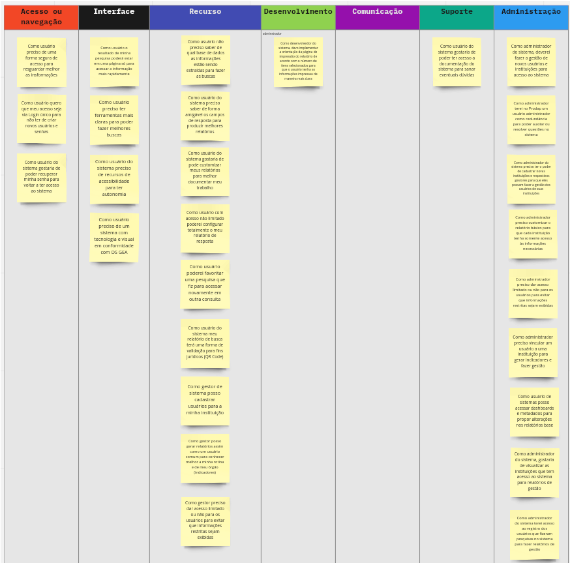 Todas as histórias de usuários devidamente agrupadas em grupos